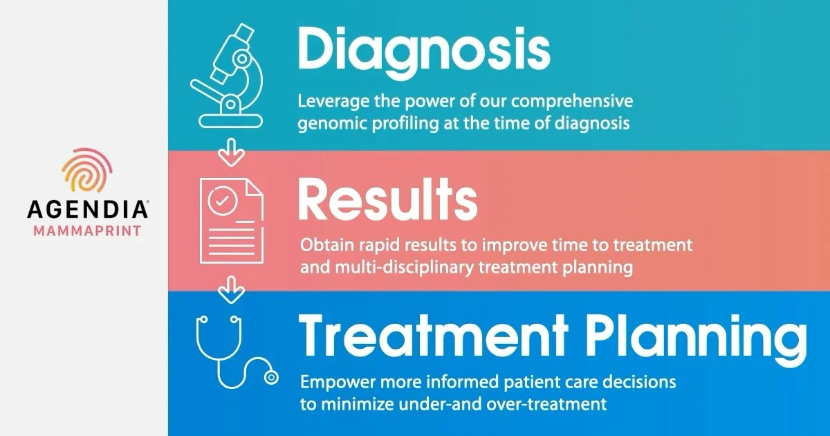 A G E N D I A - is a precision oncology company focused on breast cancer, using genomic testing to help care teams better understand a tumor’s biology and recurrence risk. Their tests, including MammaPrint and BluePrint, provide clinically actionable insights that support more personalized treatment decisions and help avoid under- or over-treatment.